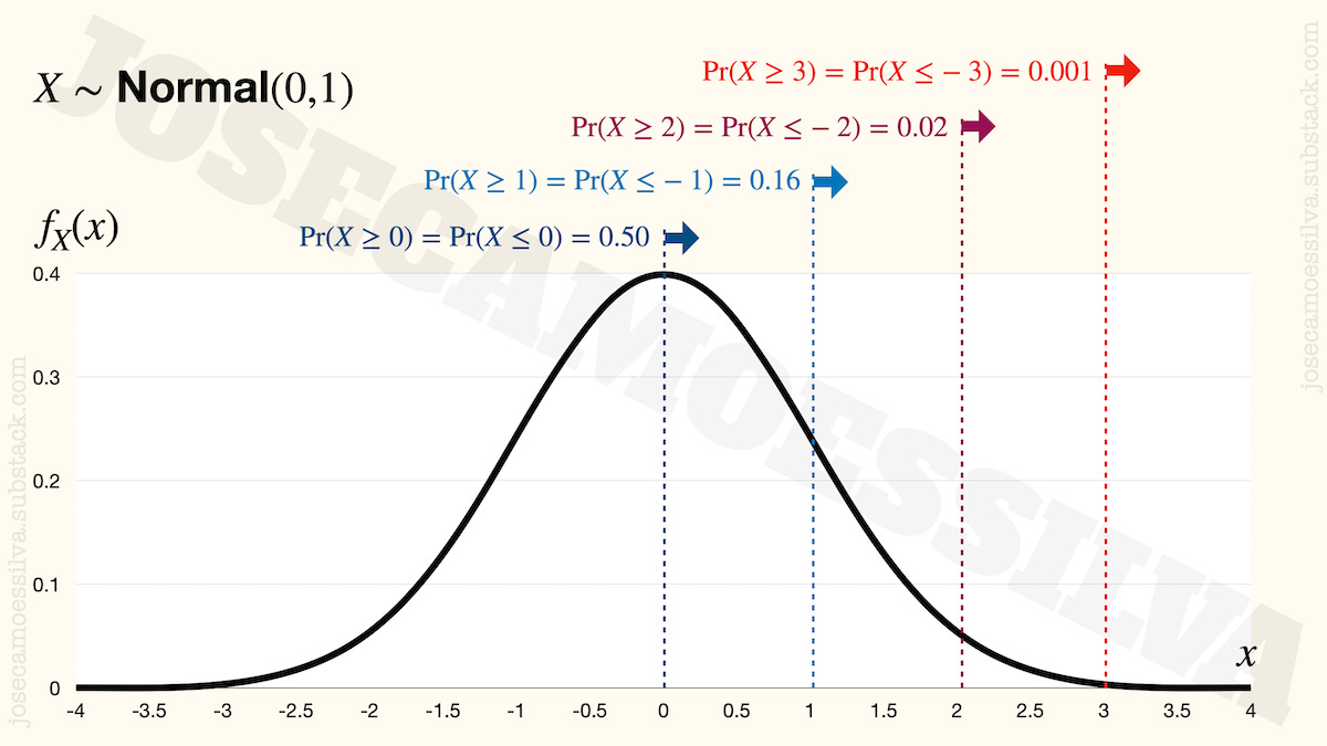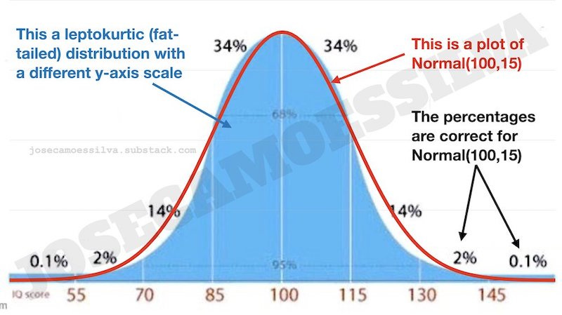 On the off-chance that readers haven’t seen a Normal distribution or are unaware of some of its more relevant implications, here’s one (a real one, plotted not drawn, unlike the ones in many “memes”1):