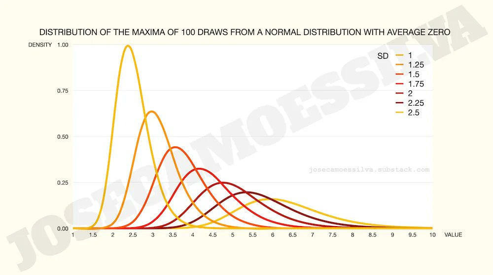 Inspired partly by the writing of my next book (on technology) and by rampant misuse of extremes to make statements about the mean, especially in the cesspool that is IQ-twitter, here are some thoughts on extreme values. TL;DR: